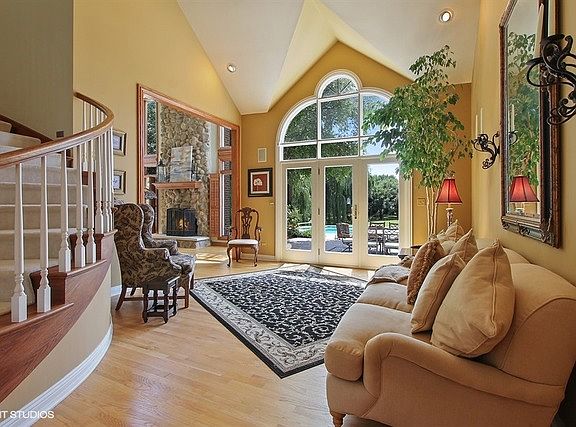 IDYLLIC COUNTRY ESTATE ON 6.5 ACRES. SPEND SUMMER EVENINGS ENTERTAINING BY THE HEATED POOL/SPA OR SIPPING WINE ON THE SPACIOUS FRONT PORCH!GORGEOUS PERENNIAL GARDENS WILL DELIGHT EVERY SEASON! STEP THROUGH THE MAHOGANY/LEADED GLASS FRONT DOOR & PREPARE TO BE WOWED! CHEF''S KITCHEN W/VIKING GAS COOKTOP/ DOUBLE OVENS, BOSCH DISHWASHER, & GRANITE COUNTERTOPS OPENS TO BREAKFAST ROOM W/BEADBOARD CEILING OVERLOOKING POOL! DRAMATIC FAMILY ROOM W/ 2-STORY STONE FIREPLACE!WARM & MASCULINE LIBRARY W/CHERRY COFFERED CEILING, FIREPLACE W/HAND CARVED MANTEL AND BUILT-IN CHERRY BOOKCASES. ROMANTIC MASTER RETREAT WITH FIREPLACE & HIS/HER MASTER BATH! BRIDAL STAIRCASE, VOLUME CEILINGS! BLUE RIBBON DISTRICT 220 SCHOOLS! EASY COMMUTE VIA I-90 OR METRA! MINUTES TO SCHOOLS & VILLAGE SHOPPING/DINING! 4+ CAR GARAGE FOR ALL YOUR "BIG BOY TOYS"! POOL GOES FROM 3 FT. DEEP W/ENTRY STEPS TO APPROX. 9 FT. DEEP BY THE DIVING BOARD! SEPARATE IN-GROUND SPA WILL REJUVENATE YOUR MUSCLES AFTER A LONG DAY AT THE OFFICE!