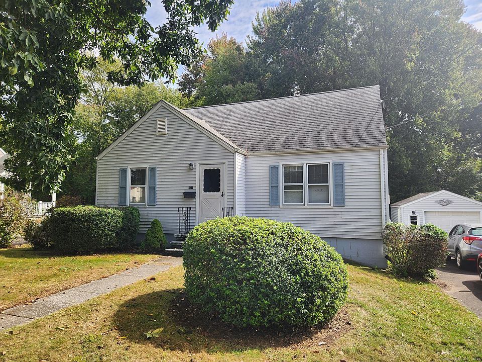 Very much a blank canvas in this well priced 3 bedroom cape with one bath and eat in kitchen, formal living room, 2 bedrooms on the 1st floor and one on the second floor with potential for a fourth. Partially finished basement with access from inside and out. Hardwood floors throughout, appliances included, laundry in lower level. Nice sized lot at .36 with open yard and a one car garage, covered patio in back. Vinyl siding, auto garage door, ready for your personal touches. Close to schools and town center, great commuter location/walk to train. Perfect rental alternative.