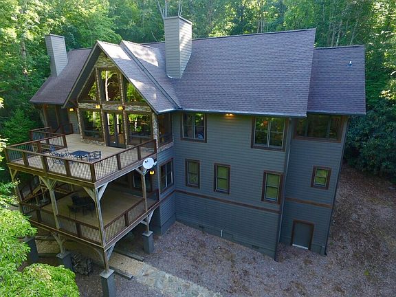 Executive style luxury home within a gated community with access to river-front clubhouse and park on the Nantahala River, lake access on Queen's Lake including The Paddle Club, Equestrian center with barn & riding/hiking trails, stocked fishing pond, extra lots & USFS border for extra privacy AND being sold fully furnished! Gourmet kitchen with granite counters & cherry cabinets, Thermador oven with warming drawer, Jenn-Air cooktop, & breakfast bar. Dining area adjoins great room with vaulted tongue & groove ceilings complete with stone gas-log fireplace. Doors lead out to the large deck and screened side porch with outdoor gas-log fireplace. Spacious main level master bedroom has walk-in closet, heated bath floors, Jacuzzi tub, dual granite vanity & oversized walk-in ceramic tile shower! Office/study with full bath, laundry and 1/2 bath also on main level. Downstairs living area with game/rec room, den with gas-log fireplace, 2 XL bedrooms, 2 1/2 baths, XL storage & equip room, & large lower deck with trail leading to stream, USFS and fire pit. Too many features to list and listed at an unbelievable price!