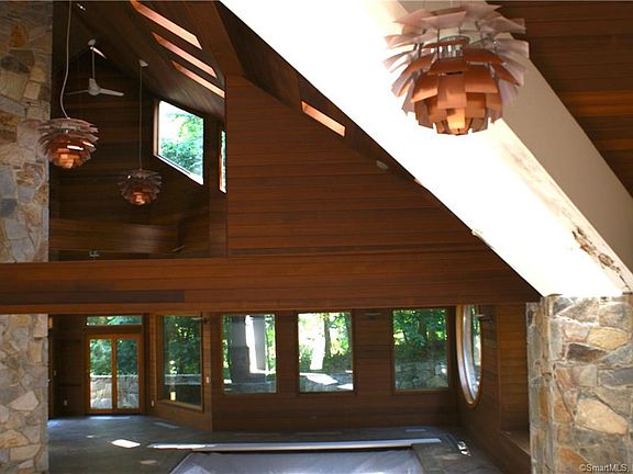 Opportunity awaits on an empty canvas! Renovation on this stunning, one-of-a-kind contemporary home has already begun and is waiting for your customizations to make this 11,000 square ft treasure your home. Work with our renovation team or bring your own. This home features an indoor pool and hard scape, three-story vaulted cedar ceilings, a spa, and an indoor recreation space that is attached in dramatic fashion to the living space in this home. The completed living space will include five bedrooms, gourmet kitchen with separate sun room, formal dining room, formal living room, a workout room, a den, seven full baths, two half baths, and six fireplaces. It has an open floor plan and balconies on each floor that overlook the pool area. The house also includes an attached 3 car garage and a large unfinished basement with 12' walls. Enjoy nature year round from outside on the stone patio in the summer months and from inside in constant view of the many large windows that allow nature indoors. And, enjoy your private, indoor pool year round. Home is sold "AS IS". Located in Fairfield County's only gated community with 24 hr gate staff, 5 mi of private roads, Heated community pool, clubhouse with country club like amenities, lighted tennis and pickle ball courts and a wonderful play ground. 60 mi to NYC, minutes from beaches, Fairfield/Westport towns & train stations. Come see this home for more info about our renovation team and proposed budget.