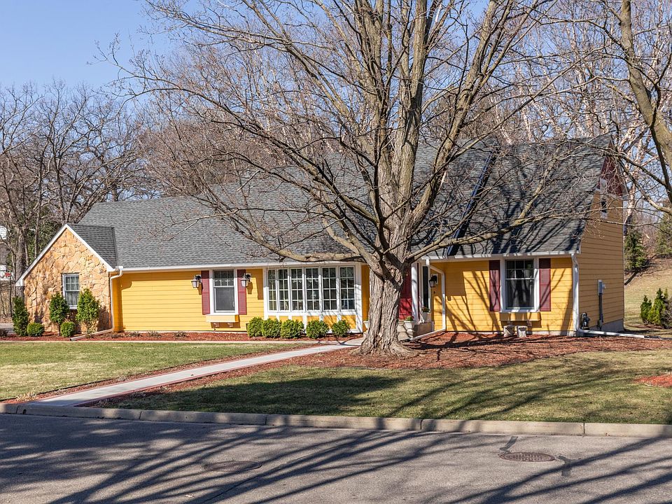 Tucked back on a quiet street in Golden Valley this home is a true find. It is filled with lots of light and has a floor plan that calls you to gather. Kitchen offers a breakfast area with family room and fireplace. Living and dining rooms flow off of it for great entertaining. Generous main floor primary bedroom with a large bath. This is the place to enjoy summer with a large deck off the kitchen for dining and relaxing. The patio offers the perfect area for a fireplace & chairs and this unique lot offers a large yard for outdoor enjoyment. Upstairs has 3 bedrooms each with character and updated bath. Lower level is fully finished and a destination for relaxing and fun. Fresh paint on the main floor makes it move-in ready for any style. Extra storage throughout. Convenient location in a peaceful setting! Aligned with Hopkins Schools- very close to Meadowbrook Elementary School and Breck School.