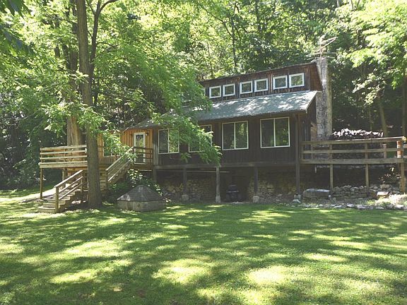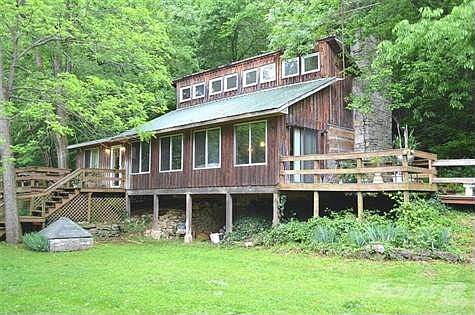 Nestled between the Palisades of Kentucky River is this unique log home sitting on 8.5 acres of woodlands. Mostly constructed of logs from 2 original 1800s cabins, this home is quite unique with a loft bedroom, 2 ground floor bedrooms, large family room with limestone fireplace, bath, kitchen, and a sunroom overlooking the river. The land is mostly covered with mature towering trees. The home has a heat pump system and county water.