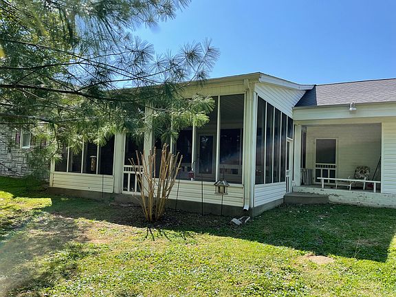 This home offers lots of curb appeal with this spacious front porch. On the rear of the home is a glassed in room and a screened in porch surrounded by mature trees offering shade. Living area includes 3 bedrooms, living-dining, galley style kitchen, family room, 2 baths, laundry hookup, Garage. HVAC installed 2021. Lot goes from street to street with a privacy hedge on the rear of the property.