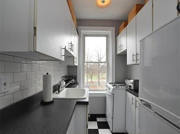Pristine and updated studio alcove on beautiful Park Drive featuring 5 large sunny windows with beautiful views facing the park! Hardwood floors, separate kitchen, space for a table, tile bath. Heat, hot water and cooking gas included. Elevator building w/ basement laundry. The sleeping alcove fits a double sized bed, perfect alternative to a much more expensive full 1 bedroom. No smokers, no pets. References required.