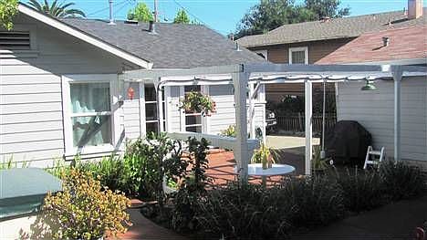 Sun-Filled. Beach-Like. Vibrant/Stylized Decor both Inside & Out. Private front yard w grassy area, front porch & stone patio. Chic kitchen opens to spacious back yd w hot tub, fire pit & lots of outdoor lvg space. Renovated bonus bldg for home office, kids play area, guests, artist studio? Open floor plan. Remodeled bath. New electrical panel & water heater. Easy freeway access. Walk to everything: Trader Joes, Whole Foods, schools & town...