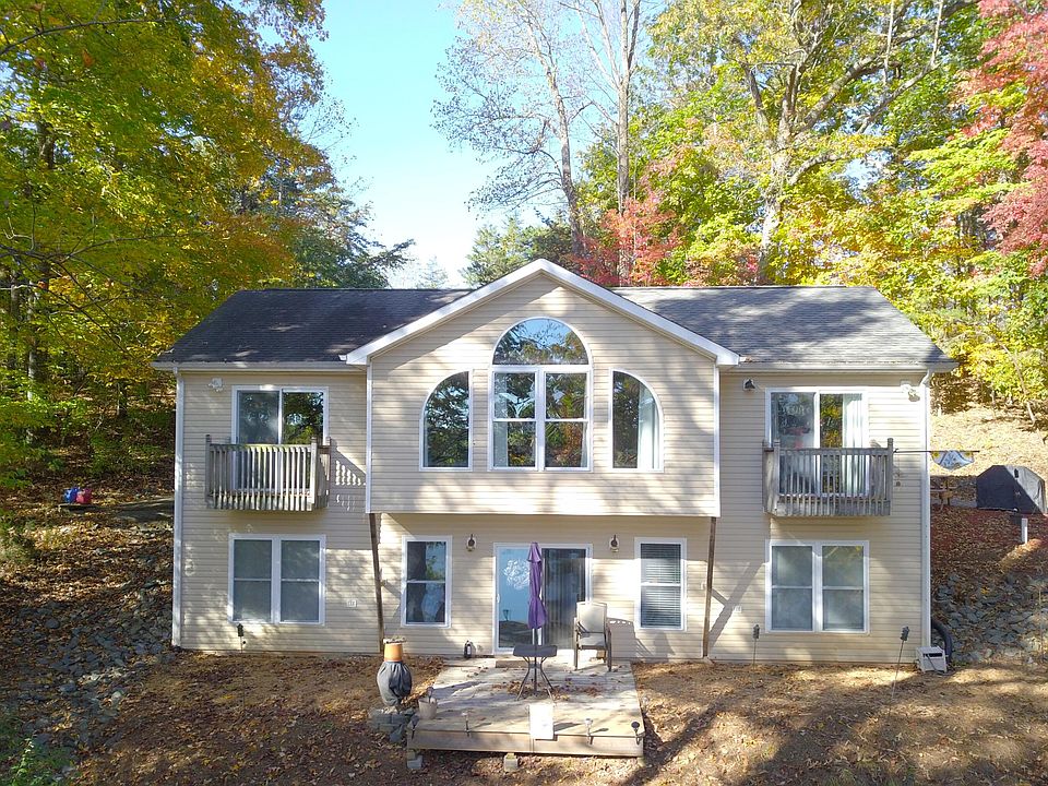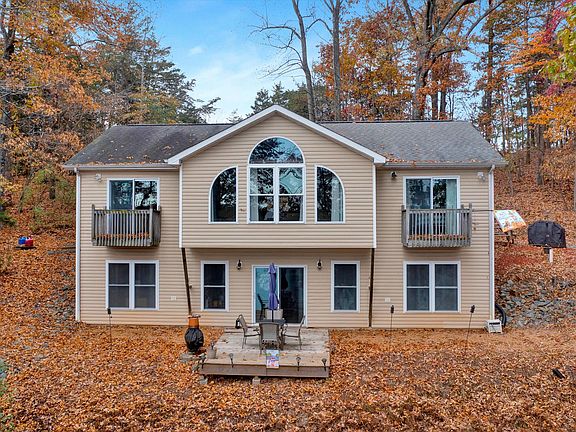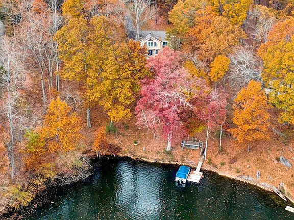 Charming Lakefront Contemporary, Perfect Lake Getaway, Cathedral Ceilings in the Great Room with Stone Front Fireplace, Paved Driveway and Paved pathway to the lake, good deep water with dock, Lots of room to expand in lower level. Sellers have enjoyed this Charming lake cottage since 2002. Entry Level offers not only the Great Room but also a Primary Bedroom suite with Full Bath, Office/currently being used as a bonus bedroom and another full bath plus laundry room. Seller originally built this charming lake home for weekend use and installed a one bedroom septic system, but are currently pursuing Chris Frith to analysis soil for future expansion. Full walkout lower level, great for expansion, already rough plumbed for half bath and wet bar. Well original registered 30 gpm. 20 amp hook up at top of lot.
