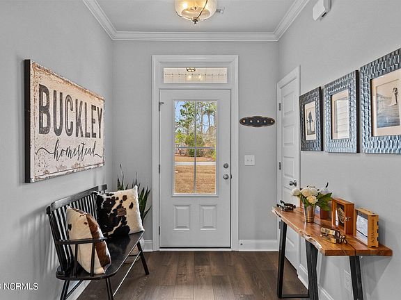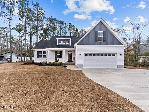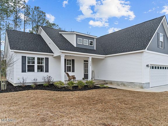 Custom homes are getting harder to find in newer construction. This home has some unique touches that add character and charm. The upstairs has been converted to a master bedroom fit for the growing teen or mom and dad that need to be closer to family. Originally a 3 BR, this additional space upstairs in the FROG leaves room for an office on the main level. Granite adorns the kitchen with a large eat in area overlooking the back yard. LVP through out the entire home provides easy maintenance. Gas log fireplace has never been used. This is a true 3 full bathroom home. The primary bathroom has a large walk in shower and a free standing soaker tub. His side/her side walk in closet provides lots of space. The laundry room has entry from the garage and has been modified with beautiful shelving over the washer and dryer. Large parking pad and 2 car garage. Water softener included with the purchase. The home has been freshly landscaped and the back yard boasts mature trees for shade. Approximately 3 miles to the NC Wildlife Public Boat Launch, 15 minutes to Topsail Beaches, walking distance to Kiwanis park and North Topsail Elementary School. All of this convenience with no HOA. Make your appointment today. Washer/Dryer/Refrigerator do not convey.