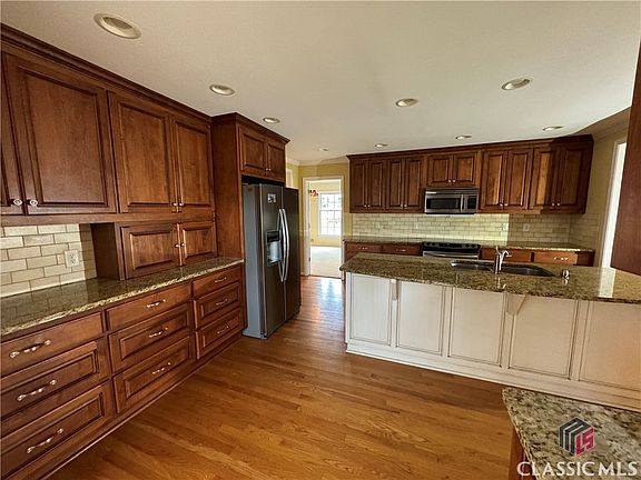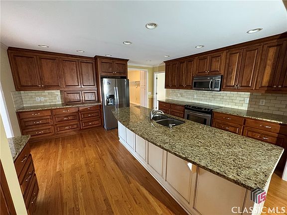First time on the market since 1966! This all brick one level home features four bedrooms on the main level with a partially finished basement on a one-acre creek lot. The kitchen has been updated with all new cabinets and lighting with granite tops and stainless-steel appliances. There is a vaulted sunroom looking out over the wooded back yard. The main level features two updated bathrooms, one in the large owner’s suite and one in the hall. There is a den/keeping room off of the kitchen and a living room/dining room off of the foyer overlooking the covered front porch through a large picture window. The basement has two additional bedrooms, a bathroom, and a kitchenette. There is a finished rec room, lots of built-in bookshelves, and a large unfinished space downstairs as well. All of this and a popular Homewood Hills location close to downtown & UGA.