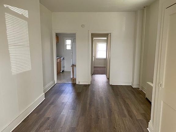 First floor updated apartment with living room, dining room, kitchen, small bedroom and bathroom. The flooring is new vinyl plank with new carpet in the bedroom. Gas hot water heat. Tenant pays electric, gas, water/sewer. Private front and rear entrances. Walking distance to shopping, dining, laundromat and public transportation. There is ample street parking. Available immediately. Great for singles. Please include your credit score and number of occupants. Tenant pays electric, gas, water/sewer. No smoking. No pets. Ample street parking.