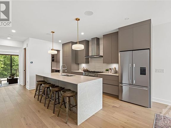 Don't miss your last chance to live in tranquility while being close to all the city has to offer in this impressive Beckett model built by Gemstone. Imagine the Rideau Canal, Experimental Farm & Dominion Arboretum all in your backyard! Designed by Hobin Architects, this 3 bed, 4 bath home combines state-of-the- art design w modern living. High ceilings, wide plank floors, pot lights & custom millwork throughout. The main level features a large foyer, 2pc bath & a sunken family room/den/office w a gas fireplace & access to the private deck w colourful views. The 2nd level features a formal living room, a Miralis kitchen w a waterfall island & Fisher & Paykel appliances. Third floor consists of 3 bedrooms, 2 baths, laundry & backs onto the Rideau Canal w views of the Experimental Farm. This location offers skating, cross country skiing, bike paths along the Canal to the finest restaurants & shops! This award winning, luxury community is a rare gem, blending nature, convenience & style. (id:46797) 2023-07-18