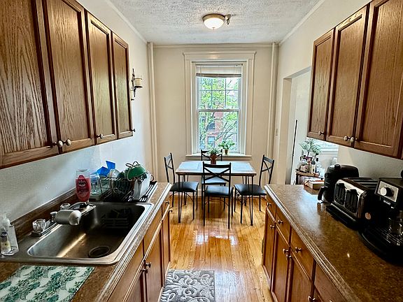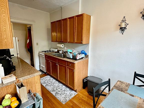 This third floor, spacious corner one bed, one bath unit gets fabulous sunlight. The living room has a view of the park and the bedroom overlooks the courtyard. Nice renovated kitchen with eating area. It has two huge walk in closets and lovely hardwood floors. Renovated bathroom. Laundry and bicycle storage in the building. Heat and hot water included in the rent.