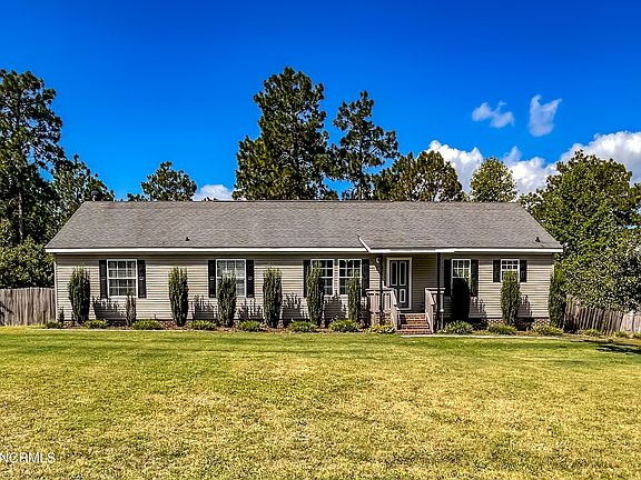 Fantastic location! This move-in ready home has everything you're looking for. Outside you'll find just over 3/4 of an acre with a large private deck, 6ft. privacy fence encloses the backyard with mature fruit trees including fig, pear, nectarine & peach plus a detached workshop with electrical hook-ups. Walk inside to solid oak hardwood floors in the living areas and waterproof LVT flooring in the kitchen and guest bath. Owner's suite has large attached area perfect for extra closet space, office or reading nook. En suite bath has double sinks, oversized soaking tub & separate shower. Cozy family room off the kitchen has wood burning fireplace. HVAC replaced in 2019 and whole-house tank-less water heater installed. Just minutes from downtown Southern Pines, convenient to Ft. Bragg and Raleigh. Must see home with so much to offer!