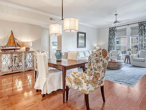 Located in the heart of downtown Daniel Island, this charming light filled corner unit condo with open floor plan is filled with an abundance of natural light. Walk to restaurants, shops, schools, parks, walking trails, community library and The Waterfront, where you can take the Daniel Island Ferry to downtown Charleston. This beautifully updated 3 bed, 2 bath condo has been meticulously maintained and features stainless steel appliances, custom closets and built-ins, plantation shutters and hardwood floors throughout the main living areas. Residents enjoy a private parking garage, storage units, an elevator to each floor and controlled access to the building. A resort style swimming pool, landscaped courtyard and outdoor grilling area are also available for the exclusive use and enjoyment of the residents.