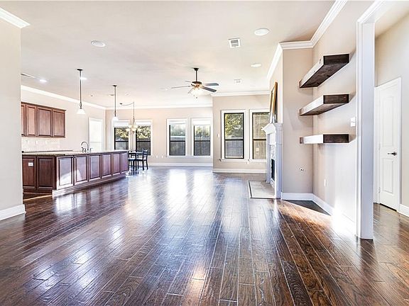 Community poolTons of storageTravertine backsplashOpen split floor planPrivate primary suiteGas cooktopOpen-concept living with fireplace