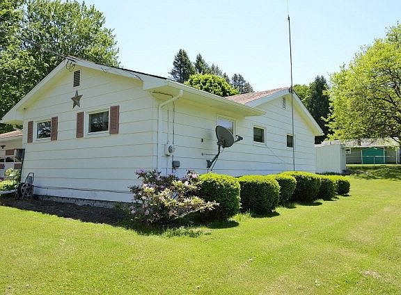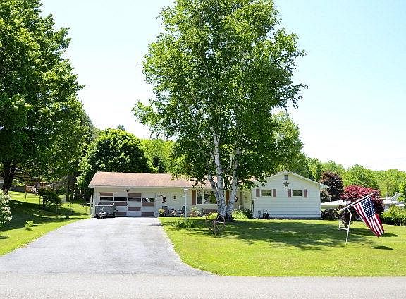 The search is over! Country setting, not far from town, on a pretty lot. Mature landscaping, paved drive, storage shed. This home has all you need - One floor living if you need it w/room to spread out on lower level as well. 3-4 bedrooms, 1 and 1/2 baths, 2 car garage and workshop, enclosed sun room and finished lower level. Updated bath w/walk in shower. Roof is newer. Also offers a new furnace w/zoned heating. Well cared for and move in ready!