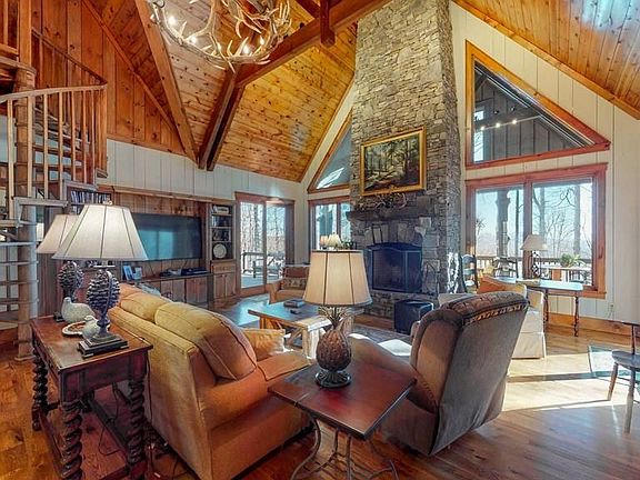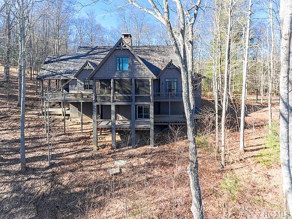 Settle into your very own mountain retreat in gated Cross Creek with this luxury home that has two master suites and a guest room all on the main level. The living room has a cathedral ceiling, a stacked stone floor-to-ceiling fireplace, and multiple windows that let in plenty of natural light. Glass doors open out to the deck that features long range mountain views, and to the screened porch with a second stacked stone fireplace. The kitchen has a charming vintage farmhouse style and boasts every updated feature a chef could want including gorgeous granite countertops. A spiral staircase leads to the bunk room loft. Conveniently located a short drive from both Cashiers and Highlands, this home is an entertainer's dream with room for everyone. Cross Creek adjoins national forest land so you can hike from your own back yard.
