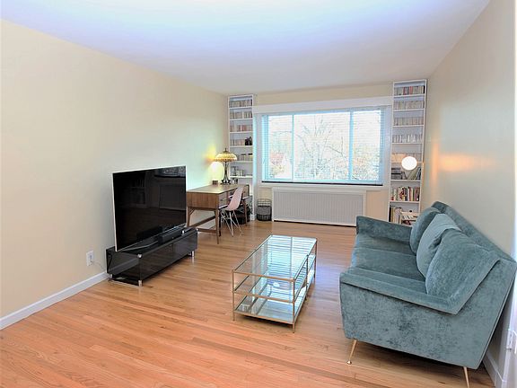Beautiful FURNISHED 1 bedroom 1 bathroom condo located in a brick elevator building in the historic district on Pleasant Street . This top-floor corner unit features an open floor plan living/dining room with art deco fixtures and built-in bookshelves, an updated kitchen with granite and stainless steel appliances, a completely renovated bathroom, hardwood floors, in-wall air conditioning and lots of closet space. This south-facing condo is sun-drenched, with seasonal views of Spy Pond and the Boston skyline. Heat and hot water and 1 parking space is included! Laundry and storage space in building. Furnished with West Elm furniture. 3 minutes to Arlington Center's restaurants, cafes, shopping, theater and public transportation (buses 67, 77, 79, 350). Close to Alewife, Harvard Sq., Spy Pond and the Minuteman Bike Path. 12+ month lease. Heat and hot water included.