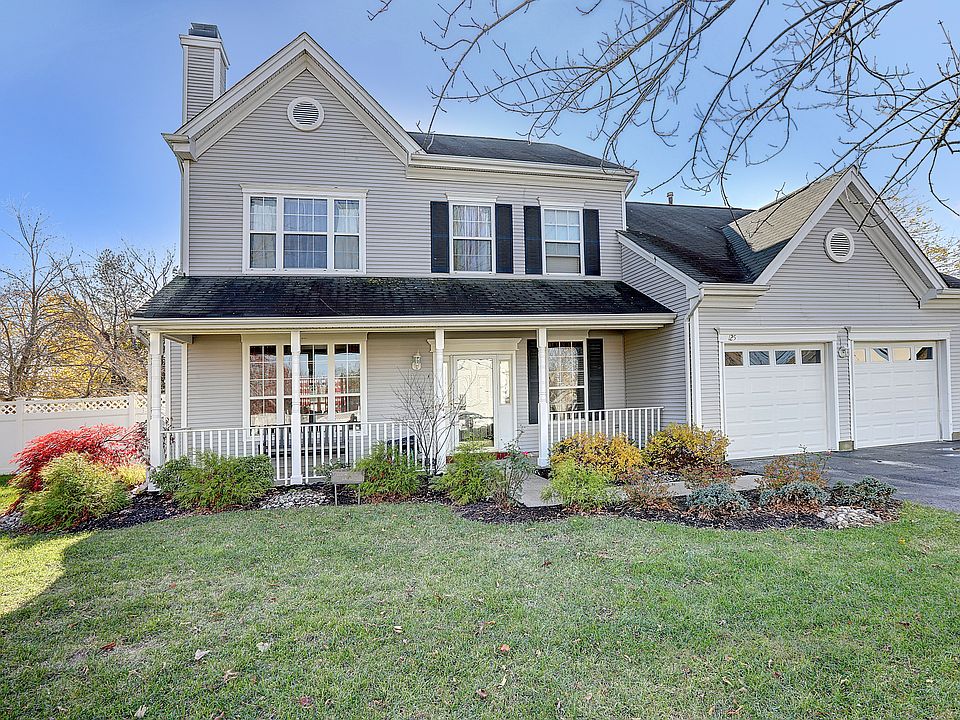 Looking for the perfect holiday gift? Put a ribbon & bow on it and this home could be yours! Enjoy the class & ambiance of this lovely maintained colonial w/ a rocking chair front porch nestled in a beautiful upscale development. Greet your guests in an open foyer & entertain in the formal living rm & dinning rm accented w/ rich floors, wood burning fireplace & recessed lights. Kitchen features tile floors, stainless steel appliances & a separate dining area that flows effortlessly into the light filled family room accented by windows, skylights & vaulted ceilings. At the end of the day, enjoy the double door Master Suite featuring cathedral ceilings, 2 WIC's & adjoining bath. There is very little left to the imagination w/ fine appointments, 2 car garage, fully fenced rear yard & patio!
