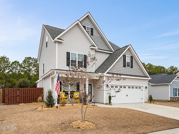 Coming Soon in Poplar Branch! Built by American Homesmith in 2015, the Loblolly model features 4 bedrooms, 2.5 bathrooms, a 2 car garage, and plenty of room to spread out. It is in move in ready condition; freshly painted and pressure washed, this sprawling home has 2900 SF, and is ready for you and yours! Situated on .26 acres, the home features include a flex space which could be used as formal dining or office, a convenient half bath/powder room, and LVP/LVT flooring in the main living area. This open concept home has a gas log fireplace, large kitchen island with a beautiful stone accent, stainless steel appliances (new in 2021) and an eye catching backsplash. There is a whole house water conditioner/softener system for the home, installed by Lifetime Water Systems. Coming in from the garage is a custom mudroom nook perfect for dropping off coats, shoes and bags. From the living space, you enter the porch/patio to the backyard through a covered pergola for shady outdoor space in those hot summer afternoons. The backyard space is huge! It is fully fenced, and includes a playset and a shed. Upstairs you will find 4 bedrooms with carpet to keep your toes nice and cozy, 2 nicely appointed full bathrooms, and a spacious laundry room. On the 3rd floor is a large bonus room with a gorgeous ship lap accent wall. This flex space could be a game room, extra guest space, movie area, or man cave. Just off the bonus room you will find tons of walk in attic storage! You will have peace knowing that the property is not in a flood zone, has a termite bond and transferrable home warranty paid through 2/2026. Just a 7 minute drive to Surf City. Don't miss this one! It will surely get snatched up quickly!