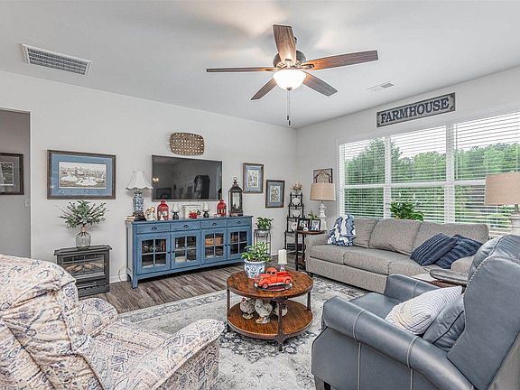 Welcome to your dream home! This stunning 3-bedroom, 2-bathroom ranch-style gem offers a delightful bonus room over the garage, perfect for any lifestyle. As you step inside, you'll be captivated by the luxury vinyl plank floors that grace the main living areas, including the elegant owner's suite. The secondary living spaces feature plush, like-new carpeting, adding a cozy touch. The 9-foot ceilings throughout the main level create an airy atmosphere, with natural light flowing effortlessly through the open-concept living, dining, and gourmet kitchen areas. You'll love the impeccable craftsmanship of the top-tier cabinetry, granite countertops, spacious island, pantry, tiled backsplash, and all stainless-steel appliances, blending functionality with style. Step through the upgraded French doors to your serene, low-maintenance backyard oasis. The covered patio is perfect for alfresco dining or simply unwinding in peace. Your owner's suite is a true retreat, featuring gorgeous tray ceilings, a spa-inspired master bath with a 5-foot tiled shower, walk-in closet, and dual vanity. It's conveniently nestled away from the two spacious secondary bedrooms, which share their own hall bathroom, ensuring peace and privacy. Ascend the stairs to discover a versatile secondary living space or potential fourth bedroom, offering endless possibilities for customization. This home seamlessly combines modern sophistication with comfortable living, creating a sanctuary that's ready to welcome you. Additional upgrades include custom fixtures, ceiling fans throughout, freshly epoxy-sealed sidewalk and garage floor, an extra closet in the garage for storage, and a storm door at the front entry for added security. You'll fall in love with this gorgeous home, conveniently located near shopping, dining, award-winning schools, Lake Murray, and more! Welcome home.