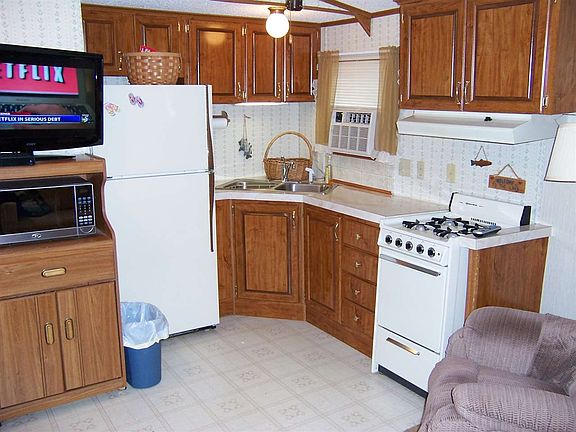 Shared 100 ft lakefront lot - boat dock & mooring for season. Small annual Assoc Fee is $500.00 - includes R E taxes, maintenance of common land, trash pick up - assigned parking - 1990 mobile home with large enclosed porch. The most economical way to have a dock on Higgins Lake, and a cottage too!