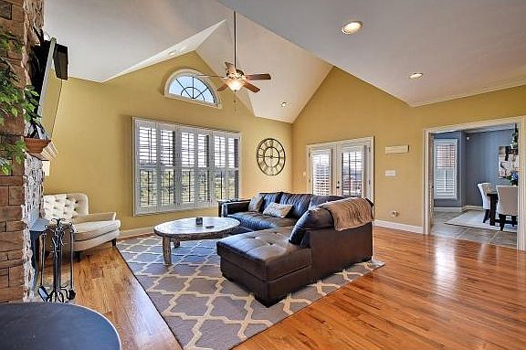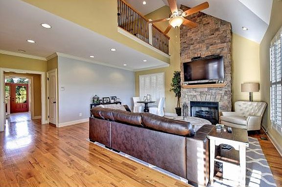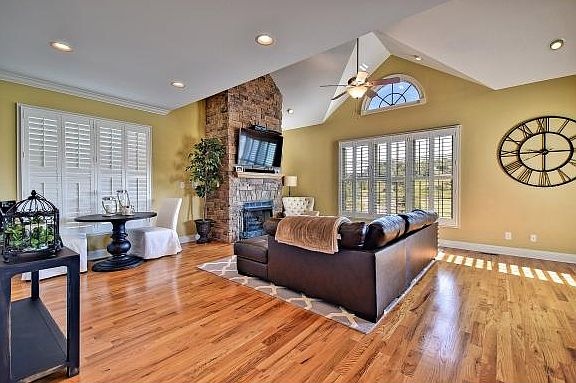 Gorgeous home located in Quail Creek at the The Ridges. Home sits on the 11th tee at Blackthorn Golf Course. Features large living room with vaulted ceilings and 2 story stone fireplace, main level master with tiled shower and double bowl vanities, hardwood floors and plantation shutters throughout. The oversized kitchen is great for the chef in the family and large gatherings. There is plenty of granite space with a 4 person bar top, double ovens, drop in gas range and custom cabinetry. Upstairs features 2 bedrooms each with their own bathroom suite. The finished basement has a kitchenette area with large stone bar, huge open area perfect for big screen, pool table, etc. Enjoy the evenings on the back deck overlooking the 11th green. Security deposit: $2,500.00 Non-refundable pet deposit: $300.00
