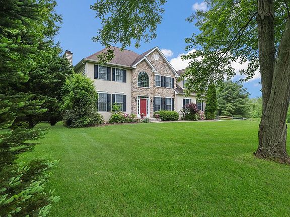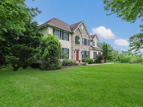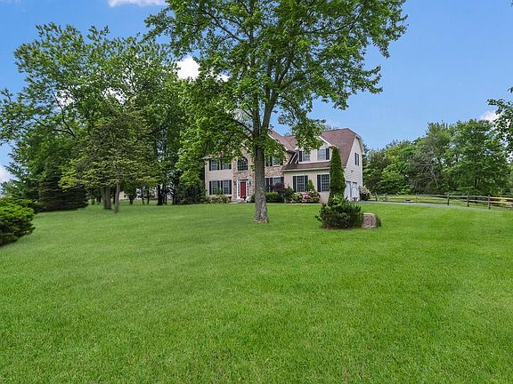 WELCOME HOME!! Custom built home by D'Angelo Construction. Enter through this 2-story foyer with gleaming hardwood floors and Palladiam window that allows maximum natural light. Hardwood floors are carried into the formal dining room and features ceramic tile insets at the corners, custom crown molding and chair rails. Custom moldings and upgraded trim are also found in the formal living room with French doors that lead into the beautiful family room with full stone wall fireplace surrounded by windows to appreciate the outside. The kitchen features an island with a Jenn-Air down draft gas cook top, custom ceramic floors, granite countertops, and an open spacious breakfast area with volume ceilings with skylights and access to the rear deck with hot tub and fenced in yard. The laundry room and powder room complete the main level. The master suite is spectacular with volume ceilings, sitting area with u-shaped built-in window seats, his and her walk-in closets, dressing area and a beautiful master bath with soaking tub, double stall shower, double vanity and plantation shutters. Upstairs is completed with 3 large additional bedrooms and hall bath. The basement has a stamped concrete floor, outside egress and separate storage area with mechanicals. This property does have an interior on-site sprinkler system