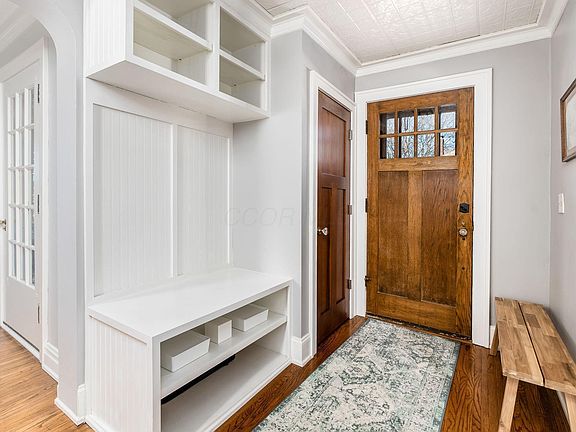 Stunning brick colonial home in the heart of Clintonville. This fully remodeled gem boasts an open-concept kitchen featuring white Shaker cabinetry, slate finish LG appliances, quartz countertops, a subway tile backsplash, farmhouse sink & island w/butcher block counter. Hammered bronze lighting illuminates the island, creating a warm & inviting atmosphere. The spacious living room features beautiful glass doors that lead to an enclosed porch, perfect for relaxing or entertaining. The foyer welcomes you w/a unique tin ceiling. The primary bedroom is a peaceful retreat w/a decorative fireplace, & access to a private enclosed porch. The third floor walk-up presents an excellent opportunity to add living space. A/C 2023, furnace 2019, HW tank 2015, windows 2012/14. New front stoop & sidewalk