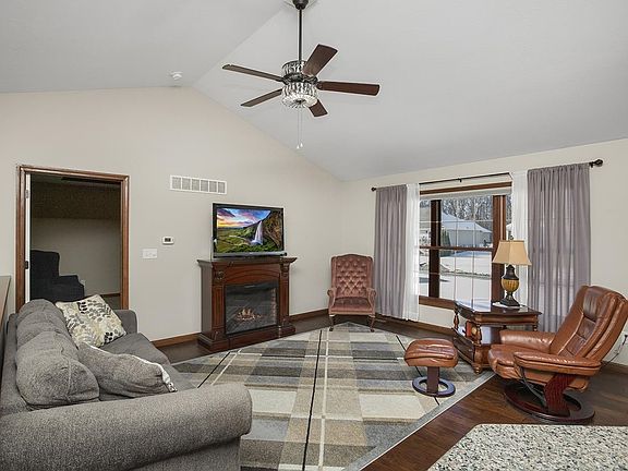 Immaculate! This 3 bedroom, 3 bath villa is like new and move-in ready for you. Entry leads to open concept main floor featuring gleaming wood floors, a living room with vaulted ceiling and gas fireplace, a convenient kitchen with granite countertop, breakfast bar, pantry and all appliances remaining, and a perfect dining spot overlooking the pond with patio doors to step out onto the Trex balcony. Primary bedroom with a lighted tray ceiling, private bath has a walk-in shower, 2 sink vanity and walk in closet. Full finished basement includes a large family room, a bedroom with walk-in closet and an egress window for safety and light and a full bath. Quarterly HOA fees of $552.00 for maintenance free exterior living. See HOA information for all the details. Light over pool table does not stay, seller will cap off.