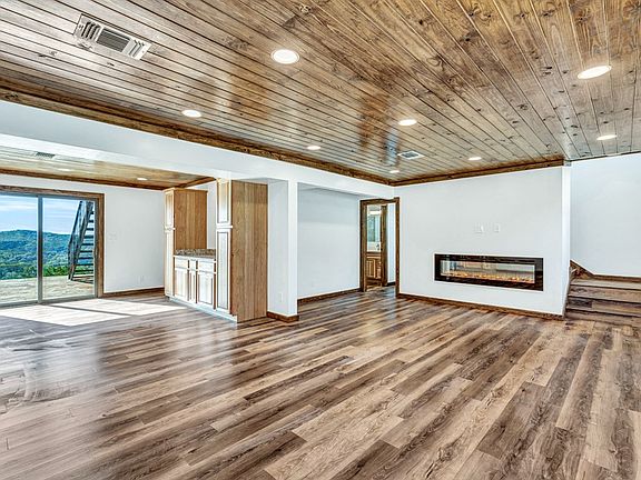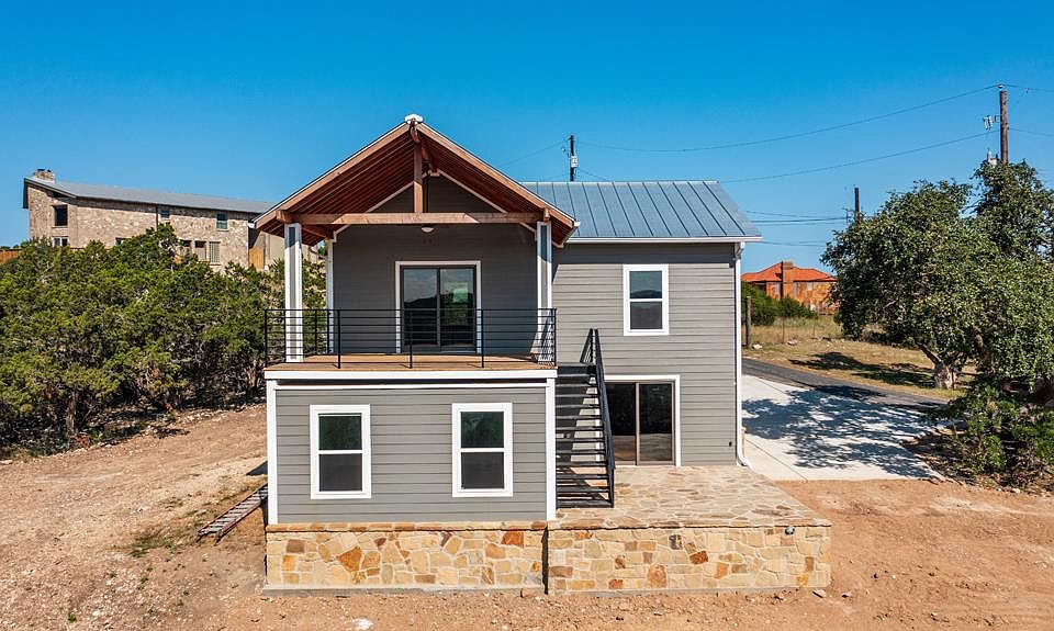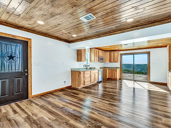 This 2 story 3/2 home sits on 2.5 acres in the Rustic Hills Subdivision in Hunt Texas, it has been completely rehabbed from top to bottom including SMART technology to control lighting & climate. Downstairs the master suite has a large walk in closet, beautiful walk in tile shower, nice sized laundry room as well as its own private patio to sit and watch the sunrise while drinking your coffee. The kitchen, dining and living area is one open space and includes a stainless steel Dishwasher and built in microwave as well as it's own sliding doors out to the patio. Upstairs has 2 bedrooms and one full bathroom w/a tiled shower/tub combo, a cedar lined closet as well as a 2nd living area and an office space. Both living areas include a PuraFlame electric fireplace. All the doors in this home are beautiful custom yellow pine, kitchen cabinets are Hickory and flooring is waterproof vinyl simulated wood. As soon as you step out onto the upper deck of this home you will be mesmerized by the breathtaking views it has to offer. There is lots of space for a nice size shop, circle drive or even a swimming pool. Lots of possibilities with this home. Square footage should be verified by buyers