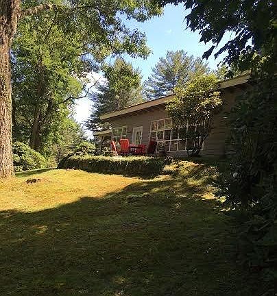 All on one level 3 bedroom 2 1/2 bath hard to explain a bungalow/house, This home is located just outside the Highlands, NC town limits, but is less than 2.5 miles to Main Street, Highlands. Rolling, grassy yard and a view of Whiteside Mountain. Be like Goldilocks, this cottage is not too big and not too small- it's just right! Easy to maintain, and the living is easy all on one level. This is it a great weekend getaway or an income-producing property. Slate floors, wood-burning fireplace, one bathroom has been renovated with tile, New tin roof installed in spring 2021, Exterior paint completed in Spring 2021. There's a great spot if you wanted to add a fire pit, and the lot has a small wooded area, great for a tiny trail.