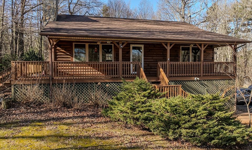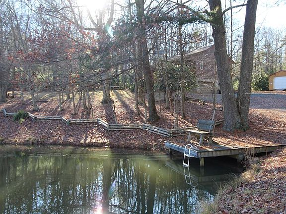 Log Cabin on 5.5 wooded acres with beautiful pond ON THE LAND... its all yours... and bordered by the ultimate in seclusion and privacy except for the herds of deer that hang out on this land. 3 bedrooms, 2 full baths, open floor plan with living room, dining area and remodeled kitchen w/granite tops, stainless appliances, beautiful cabinetry & lighting. The lower level is a full walkout into the double attached garage w/bed room, a wonderful home office cubby, large laundry room and full tub/shower bath. Storage/workshop area in the garage. The outside living areas are stupendous w/ beautiful firepit patio, covered rear deck, huge storage building, a separate shed and Mother Nature is boasting her magic here. Just off the Blue Ridge Parkway & quick to all schools, medical, shopping and fun places to go. Seller shared Brightspeed internet available, tile bathrooms, carpet bedrooms, hardwood flooring, vessel sinks, amazing outdoor living areas for entertaining & OH THAT POND !