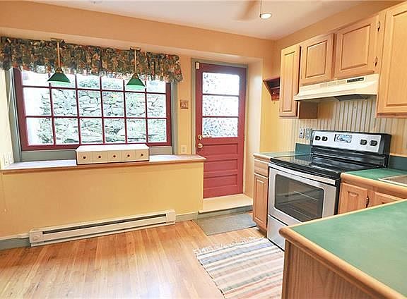 Adorable, affordable and clean. This traditional Colonial townhome has two bright, sunny bedrooms and an office/rec space on the third floor. The random width wood plank floors add style and character and the cobblestone walled in backyard is perfect for a potted garden. A wood stove helps warm the entire house in winter and the A/C keeps it cool all summer. Washer and dryer in basement. Credit score and criminal background check required. Tenant pays all utilities.