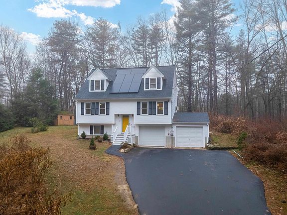 Welcome to Newton, NH! Just 5 minutes from I-495 and the MA border, this home is set on a beautiful 1.5 acre private retreat lot and offers so much for todays buyers. Offering 3 bedrooms, 2 beautifully updated full bathrooms, a 2 car garage, and a finished basement, there is plenty of space for everyone. The main level features an updated kichen, large living room and dining room combination, a stunning full-bathroom with a one-of-a kind walk-in shower and a bedroom or flex space. Upstairs there are two oversized front-to-back bedrooms (one of which could be easily made into two smaller bedrooms) and an updated full-bathroom with a double vanity and jacuzzi tub. The primary bedroom offers beautiful french doors & 2 large closets. The lower level of the home (brand new carpeting) offers a finished bonus room with direct access to the two-car garage and laundry. The home has a new roof with new solar panels (seller to payoff at closing so buyer will own them outright!) that covers all electric costs. The backyard is private & offers a large screened in porch, a new deck and paver-patio fire-pit. Recent updates include: new drvieway and walkway, water softener system, roof, front porch/stairs, back deck, patio, bathrooms, lower-level capreting & two new AprilAire filteration systems. If you are searching for privacy, with close proximity to the highway and great value, come & take a look!