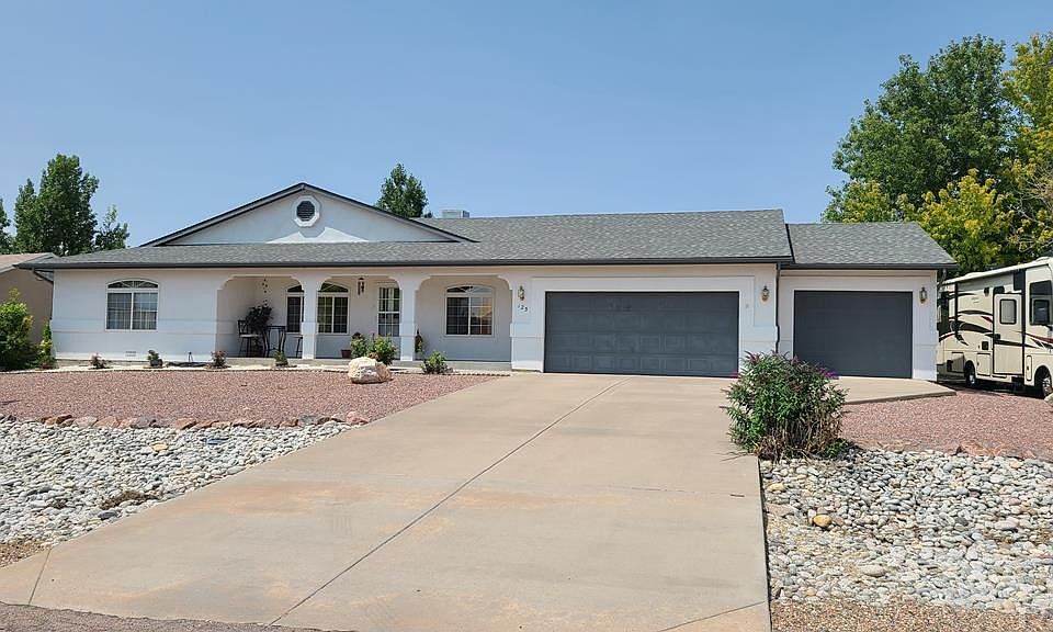 A super nice rancher in the Desert Hawk Golfcourse area. Three large bedrooms (double sink vanity in the master bedroom), two baths with a huge 3 car plus garage, and additional heated and cooled 20' x 11' workshop attached behind the garage, additional to the 1702 SF! This home is in incredible condition with hardwood floors throughout the main living areas with hard surface countertops on beautiful cabinetry. This home has the desired split bedroom design, mudroom/laundry room, and all the amenities you can think of, all on one floor! The landscaping is immaculate, with rock and trees out front and a beautiful grass lawn outback. It also has huge front and rear covered porches and a large open rear patio too! There is always a great place to hang outside regardless of the time of day or the weather. This just feels like home.