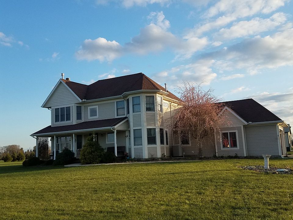Two story with partially finished basement. Customer framed, 2x6 exterior walls. Sits on 5.033 acres with pole barn. Concrete floor in barn.