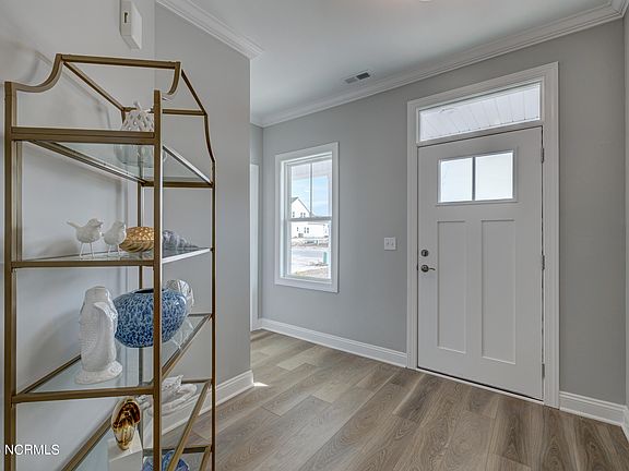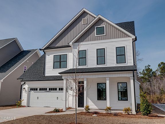 The Danwood 2 by Hardison Builders is a fantastic new plan! Lovely to look at and relax on those generous front and back covered porches, but just wait until you step inside! The dining room with its on trend trim work will take your breath away. The living room will make you want to kick your feet up and enjoy the fireplace. But the heart of the home is the kitchen and what a heart this one is! The large island with built in seating is unbelievably gorgeous, the lights above it will make you glow, the QUARTZ countertops give you a terrific prepping surface, and the staggered cabinets, the soft close drawers, and the stainless appliances round out the feel of a true centerpiece to your new home. In the FIRST FLOOR Primary Suite, the soaring vaulted ceiling in the bedroom and the fully tiled shower will make you sing! Upstairs, are 3 more bedrooms and 2 more FULL baths with all baths boasting Quartz tops! Do not miss your chance to tour this home and claim it for your very own. Magnolia Reserve is a gorgeous neighborhood in the Surf City/Hampstead area with an easy commute to shopping, restaurants, services, and yes! BEACHES! Hardison Building adds all those extra touches you've been looking for so that you can move in and start living that beach life right away. Don't miss out on seeing these elegant homes by this phenomenal builder, make your appointment to be wow'ed today!**This home will not have built-ins around fireplace** **Similar Photos and Cut sheets are representations only. Builder reserves the right to alter floorplan and features due to supply availability and efficiency. Buyer to verify schools.