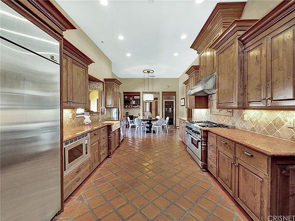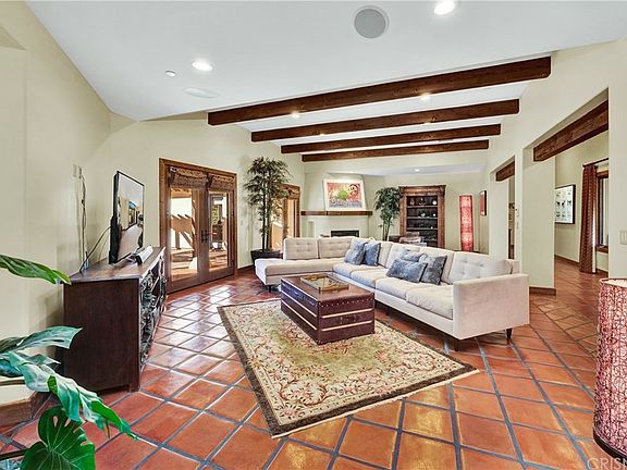 An elegant Spanish Hacienda takes on an indoor-outdoor life-style in the gated community of Bell Canyon Estates! Enter in grand style through the double doors and greeted by the high beamed ceilings in the great room and looked through the wall to wall French doors to the enticing backyard. The gourmet kitchen equips with all the bells and whistles appliances, breakfast area and is directly across from the formal stately dining room. The central office/library room offers rich wood built-in bookshelves. A secondary bedroom suite around the corner serves perfectly as a guest room. The sumptuous master suite displays a cozy fireplace, 2 walk-in closets with organizers while the en-suite bathroom features steam shower & spa tub. Two secondary bedrooms are just a few steps down the hallway and a junior suite sits on the 2nd floor. The sprawling resort-like backyard offers a splashing pool & spa, pergola, dining area and a built-in Viking BBQ cook center. Truly a luxury lifestyle living in the upscale neighborhood! See private remarks on possession. See private remarks!