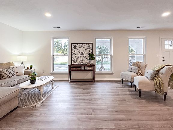 Gorgeous newly renovated home with luxurious vinyl plank & tile flooring throughout. Open concept living creates a seamless flow & is flooded with natural light. Cozy family room boasts a stunning fireplace. The expansive kitchen features an island with quartz countertop & elegant pendant lights. All-new quartz counters, tile backsplash, stainless steel appliances & chic new cabinetry elevate the space. The HUGE primary bedroom with outside access, offers 4 closets & a spa-like ensuite with a lavish shower. Step outside to a screened-in porch that leads to a spacious backyard, perfect for enjoying the outdoors. Located in the established neighborhood of St James with NO HOA. You don't want to miss seeing this stunning home!