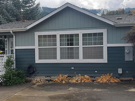 Vacant and Ready for new Owner! 2-bedroom, 2-bathroom, 1350 s/f manufactured home w/ an insulated 2 car garage in a quiet country setting in Knoll Terrace Manufactured Home Community in Canyonville. Great natural light & open floor plan w/ vaulted ceilings, large galley kitchen w/ ample cabinetry. All appliances are included; fridge, range/oven, dish washer plus washer & dryer in large utility room. New water heater in '22. Heat Pump. Great backyard w/ established landscaped & raised beds & covered patio. Residents say ''it's the best park in Douglas Co'' - minutes to shopping or recreation on the Umpqua river & just half an hour north to Roseburg. Buyer must qualify w/ Park. $783 per month lease, $80 sewer, $5.60 water plus usage & 35-gallon garbage can is $23.85 (all on statement provided by park). Rules include *No rentals/subletting. Pets' ok w/approval.