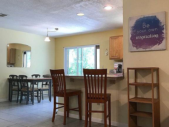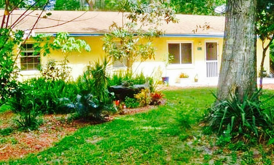 3b/2b home is a great find in peaceful St. Augustine South. This ranch style home features a peek view of the ICW from outside. Originally a 3bd which was converted to create an oversized master suite offering extra space for office, reading area, or relaxation area. Can easily be converted back to 3bd! Granite counters, tile throughout, and new appliances. This home is move-in ready! Private backyard with lush landscaping, stone patio, and built-in table! Home is being sold partially furnished. NOT in the flood zone!