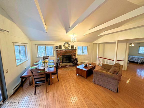 Adorable 2 bedroom ranch on over 1 acre with lakeviews! This cozy home features gleaming hardwood floors on the main level of the home. The welcoming open floor plan is perfect for family & friends to gather for engaging conversation or to cozy up to the wood burning fireplace. The rustic lower level features , timeless slate floors, open floor plan, bathroom. laundry area & ample storage. Use your imagination to turn this into a fabulous recreation room complete with a bar, pool table & big screen tv to watch your favorite sports team or movie. Enjoy the fresh mountain air on the spacious wrap around deck and independent patio area for extra entertaining. View shimmering water from the deck or take a short walk to the shoreline. Within walking distance to the pool. Welcome Home, Beds Description: 2+Bed1st, Baths: 1 Bath Level 1, Baths: 1 Bath Level L, Eating Area: Dining Area