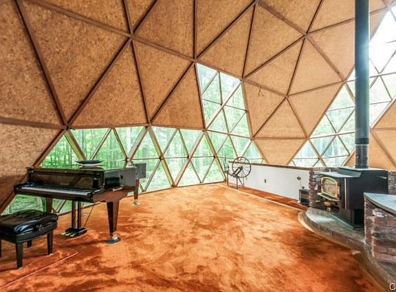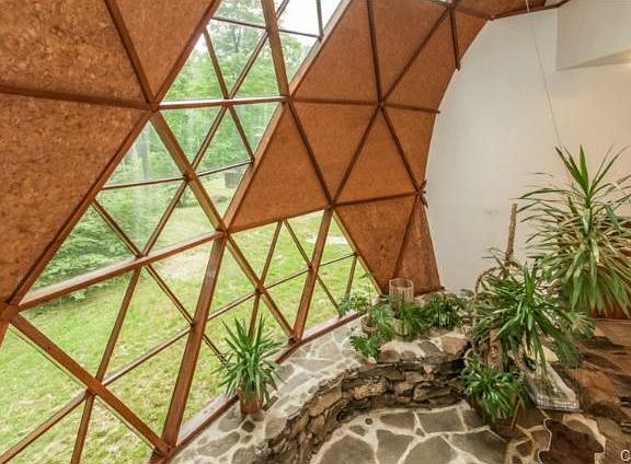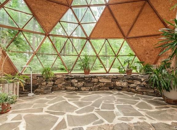 This beautiful Buckminster Fuller inspired home nestled on 4.6 wooded acres and adjacent two-story barn offers real value and endless living options. Created with painstaking detail, this home features a soaring atrium and rooms flooded with natural light. Many custom details such as built-ins, natural stone and flawless hardwoods coupled with five-spoke windows, curved walls and stairwell. Outside the inviting wraparound deck is ideal for nature viewing and entertaining. Huge rental opportunity as 3000 square foot barn ideal for contractors and separate living space with kitchen on first floor could generate additional income. Ideal for weekender, budget-minded buyer looking to move to Wilton or car collector/enthusiast. A must see!