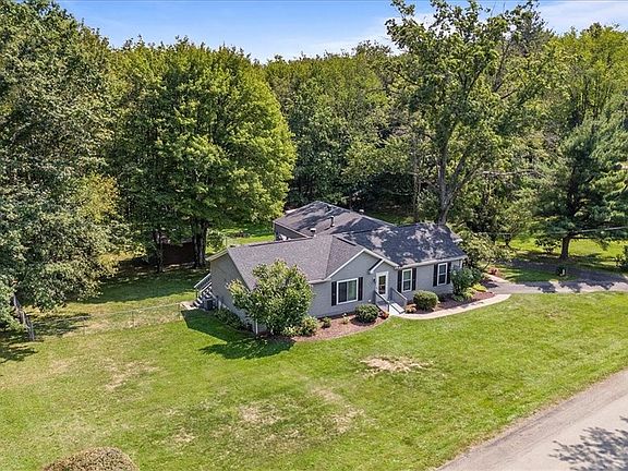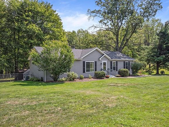Located in sought after Meridian Village at the end of a street & situated on .9 acres. This ranch has it all - privacy and updates! Front parking provides level access to front door with no steps! Covered side & 24x24 back patio provides plenty of outdoor living space. Back deck extended to new steps to side yard. Fence installed, siding installed on shed, retaining wall repaired & more parking added. Interior redone - Fresh paint, new flooring, interior doors & floor trim. Wall removed between DR and FR. NEW kitchen complete w/two pantries, custom wood cabinets, countertops and stainless appliances! 2 spacious BDs offer overhead lighting, custom blinds and ample closet space. Master offers walk-in closet and full BA w/new glass shower door, updated vanity, new mirror, fixtures, toilet and new closet. Hall BA and laundry area w/new flooring, cabinetry, and lighting. LR boasts stone gas fireplace. LL is partial finished with full BA, kitchenette and BD/LR. 2 car garage & extra parking.