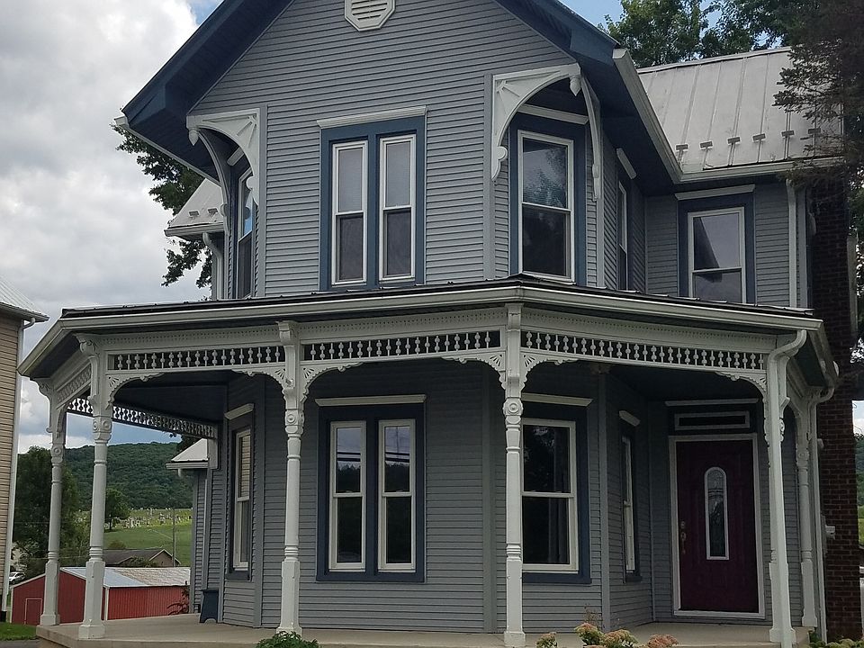 Traditional 2 story Victorian style single family home surrounded by woodlands and farms. The updated kitchen and appliances include a gas cook top and double range oven with a heated tile floor. It has a large front porch and expansive deck in the back to enjoy the views. The property includes a garden shed which matches the house and a two story shop with a full bath, wood floors, sleeping/living area, and deck allowing it to easily turn into an artist studio or in-law suite.