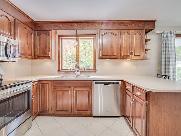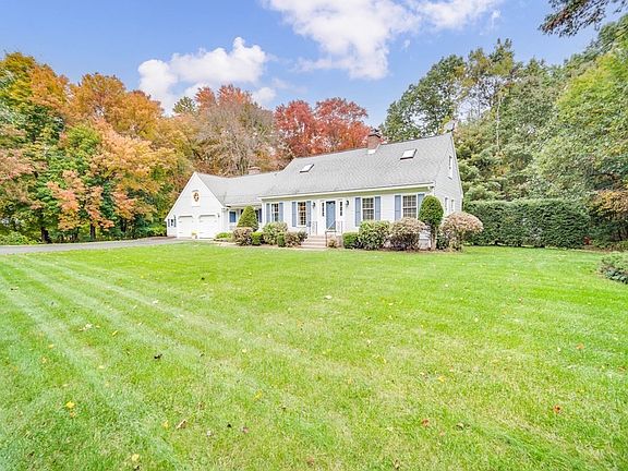 Pride of ownership is evident in this Charming Cape situated on an acre of land abutting conservation with walkway to Saw Mill pond, walking trails and close to dog park. Family room welcomes you with cathedral ceiling, stunning stone fireplace, hardwood floors and wainscoting. Step up to the kitchen with cherry cabinets, breakfast bar and dining area with sliding glass door to screen porch. Large, screened porch with cathedral ceiling, ceiling fan and access to newer deck all to enjoy the private setting of the yard. Dining room with new vinyl floor 9/22 could be living room. First floor master bedroom offers large walk-in closet, double door closet and full bath. Three spacious bedrooms on 2nd floor with new carpeting 9/22 and full bath. Basement has a large game room, workshop, laundry and wood burning stove. Oversized 2 car garage with pull-down stairs to attic storage. Large shed with electric. NEWER: HIGH EFFICIENT BOILER 2021, NEWER ELECTRICAL PANEL 5 YEARS, ROOF 2007.