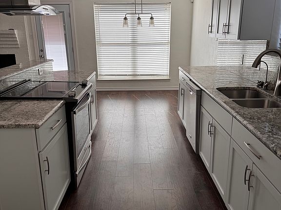 Cul-de-sac, GCISD, 3 Bedroom / 2 Bath with a large family room including kitchen overlook was renovated in 2022. All new kitchen with granite counter tops, reverse osmosis water filter, new stove/oven and dishwasher, plus under cabinet lighting. Kitchen, family, and dining rooms open to each other. Newly renovated bathrooms. Large fenced backyard with large flagstone patio. Storage shed is provided for tenant use. Ample 3 car driveway and 2 car garage. Bedrooms have lighted walk-in or step in closets. New windows throughout. Walk to restaurants, grocery store, exercise, and dry cleaner all within 2 blocks. Property is essentially in Colleyville but with a Hurst address. Small maintenance and repair costs are the responsibility of the tenant. All maintenance and repair expenses under $100 will be managed and paid by tenant at their discretion. All utilities are the responsibility of the tenant. If in landlord's opinion the front or back yard are not mowed, trimmed, and watered regularly and all landscaping maintained, a $160/mo. fee will be added to the rent to allow for professional yard maintenance to be provided at the landlord's discretion.