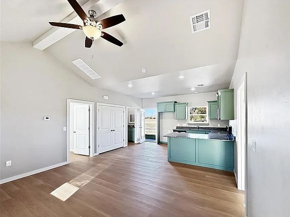- Exterior features: Fenced Backyard, One-Story Layout, Open Floor Plan, Walk In Closet