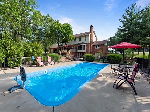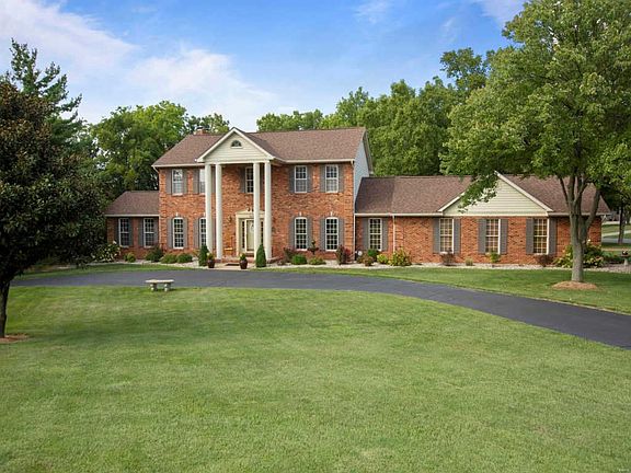 This well maintained 3 bed (possibly 5) almost full brick home is situated on 1.65 acre in the sought after Sterritts Run. This 2 story home with ~5366 sq. ft includes a formal living & dining rm w/butler door, judges paneled living room w/built-in book cases, wood burning fireplace & wet bar, office, main-floor laundry & gourmet kitchen featuring granite counters, stainless steel appliances, center island w/jenn-aire cooktop, ceramic tile back splash, oak cabinets, bay window & pantry. Upper level has two ample-sized bedrooms w/ spacious closets & the master suite showcases a vaulted ceiling, huge bath w/ whirlpool tub & his/her walk in closets designed by St. Louis Closet Co. Cozy lower level is set up to entertain w/wet bar, family rm w/fireplace, bonus rm, sauna, full bath, work out & game rm and full kitchen (great for mother-in-law suite). Walk out leads to patio & inground pool. Extensive landscaping surrounds home & private pool. First showings Saturday @ the open house 12-2pm