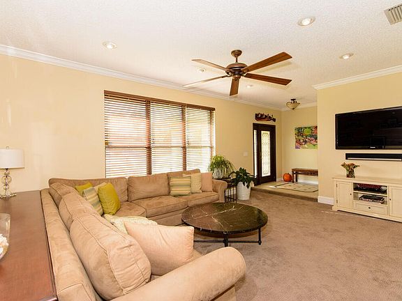 This updated, magnificent one-story cul-de-sac home with an oversize lot. Very rare one of the largest lots in the community. New open, kitchen with high-end GE profile stainless steel appliances with double oven and convection, granite counter tops, full granite backsplash, snack bar and undermount cabinet lighting. Terrific split floorplan. Master bedroom has French doors leading to the pool and a new updated master bath. This home has a brand new front glass door, crown molding throughout, tremendous amounts of hi hat lighting and updated lighting. Gorgeous updated large laundry room with extra cabinetry. Screened in patio with covered lanai. Private yard with a solar heated salt water pool, fire pit and coconut trees. Located close to shopping, restaurants and A rated schools. NO HOA